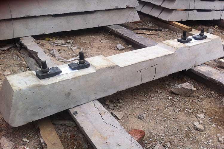 2、混凝土岔枕:混凝土岔枕是目前世界上主要采用的岔枕形式。隨著鐵路高速、重載發展的需要,用混凝土岔枕代替木岔枕已成為岔枕的發展方向。混凝土岔枕材源較豐富,并能保證幾何尺寸,使軌道彈性均勻,提高了軌道的穩定性。且不受氣候、腐朽、蟲蛀及火災的影響,使用壽命長。此外,混凝土岔枕還具有較高的道床阻力,可提高線路的橫向穩定性。