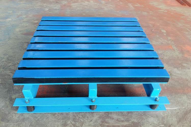 2、适用范围:适用各式带式输送机,特别适用于长距离,高运速,大运量,高强度,工况恶劣的带式输送机。主要用于替代缓冲托辊,缓冲床由缓冲条组成,而缓冲条主要应用优良的高弹性特种橡胶层充分有效吸收了物料下落时的冲击力,大大降低了物料下落时对输送带的冲击,改善了落料点的受力状况。