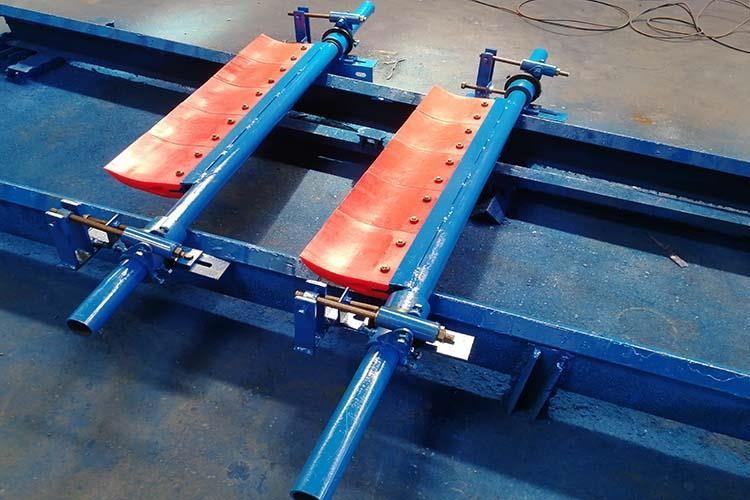 6、清扫器在输送机上有着不可忽视的作用。在运行中,如果人为的清除机尾滚筒附着物,往往容易发生严重人身伤亡事故,而清扫器有及时、方便地、快速的清除滚筒附着物的特点。