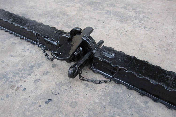 铰接顶梁是煤矿巷道中常用的支护顶梁,其长度比较短,带有铰接连接头,它可以与带有铰接顶盖的各种类型的单体液压支柱配合使用组成金属支架,供煤矿的水平及缓倾斜回采工作面支护使用。铰接顶梁能悬臂支护工作面输送机上面的顶板,使煤壁与支柱间有较大的空间,从而为采用新型采煤机械和可弯曲输送机,实现采煤机械化提供条件。