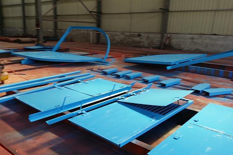 防火柵欄門是防火門與柵欄門的結合體,因此具備了兩者的特點,目前的使用是非常廣泛的,主要用于主變電所與水泵房防水門來水側、消防器材庫、材料庫等。防火柵欄門平常具有通風功能,一旦遇到異常情況時,就具備了防火功能,其結構簡單,操作方便。主要是在煤礦井下主排水泵房和主變電所硐室之間使用,在危險環境下防火柵欄門能夠起到隔離火源的作用,防止火險的蔓延。